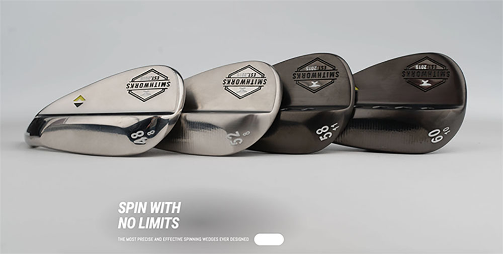 | Das einzigartige „x“ Muster zieht sich zusätzlich zu den Grooves (Rillen) über die gesamte Schlagfläche. Dies sorgt für optimierten Ballkontakt und kontinuierlichen Spin auf jeder Runde. Der Schlägerkopf verfügt zudem über einen Multi-Shot-Sohlenschliff, welcher das Spielen aus allen Lie-Winkeln ermöglicht. | Messungen haben ergeben das SmithWorks Wedges einen wesentlich höheren Spin als namhafte Tour Wedges erzeugen. Verglichen mit einem regulären Wedge ist dieser Unterschied jedoch noch wesentlich größer. | |